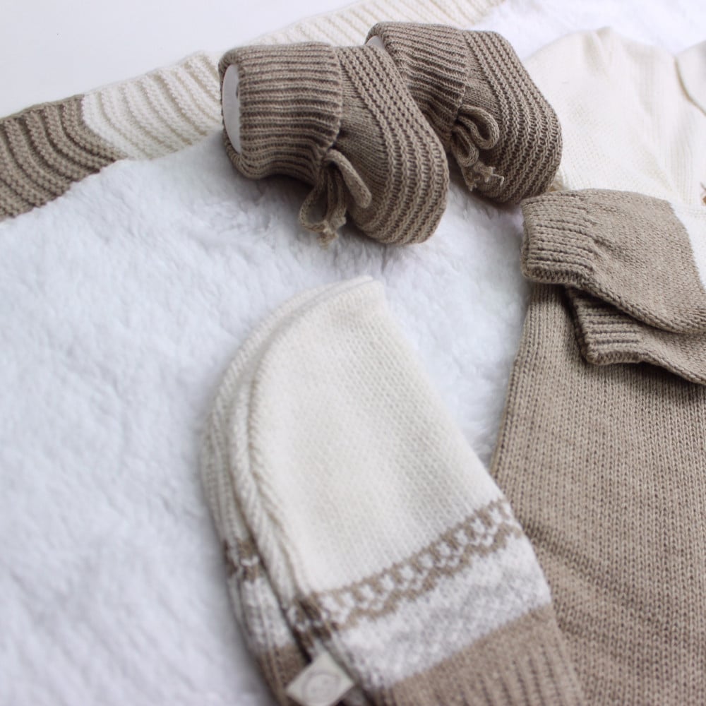 - منسوج من قماش التريكو ليمنح طفلك الدفئ في الاجواء الباردة ولمساعدة صغيرك في الإحتفاظ بدرجة حرارة الجسم في فصل الشتاء