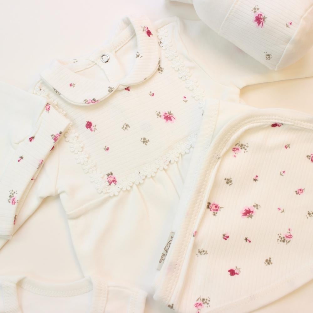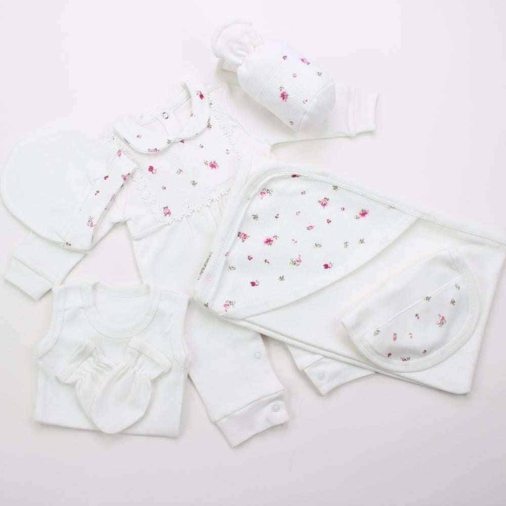 طقم ملابس مواليد بنات 7 قطع بتصميم الورد